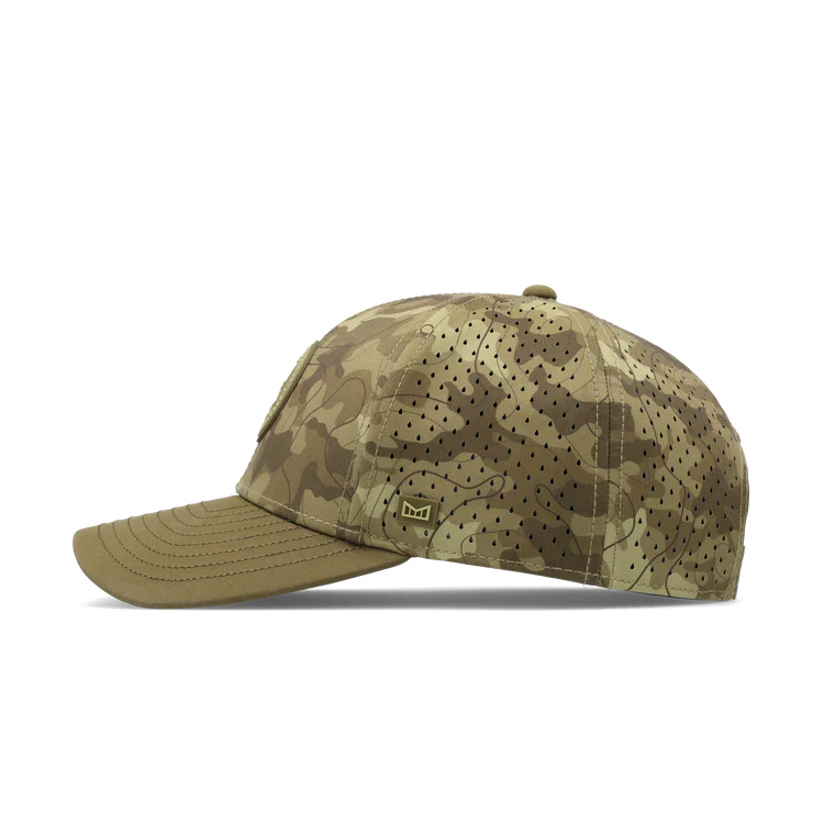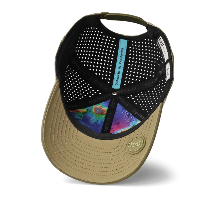The Compass is a shape Mark Healey helped bring to life. Fit and utility matter most to him, especially during long days under the sun. His signature melin allows sunglasses to sit clean for full protection, providing a comfortable fit all day long. The camo design is an evolution of Healey’s first two signature hats, reflecting the side of his world outside of the water. Inspired by the green hills of Hawai’i and designed to look good in day-to-day life while easily following you into your pursuits out in nature.