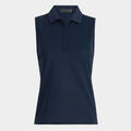 PLEATED COLLAR TECH PIQUÉ SLEEVELESS POLO